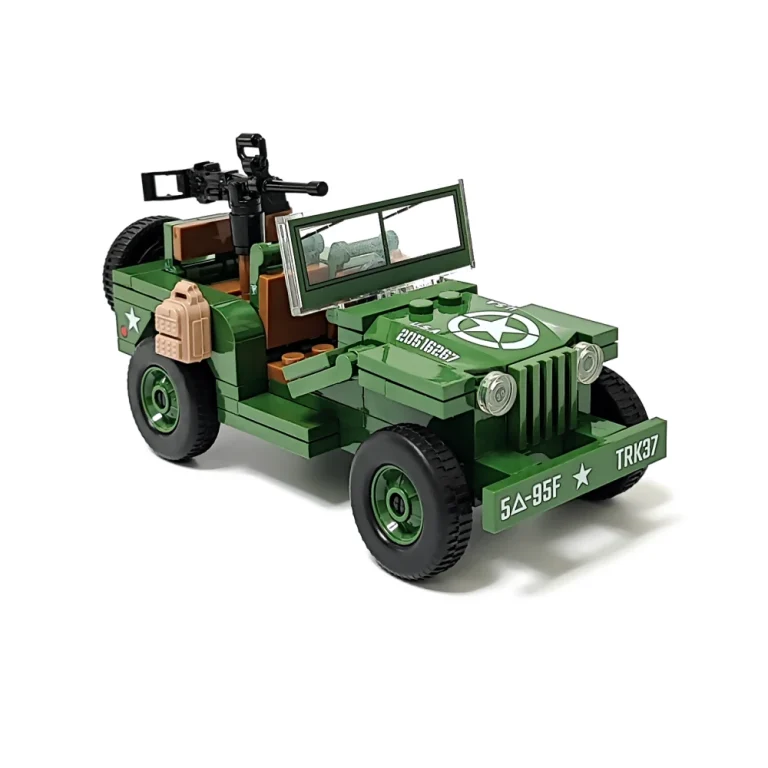 アメリカ軍が使用した小型で高機動な四輪駆動車です。連合軍に広く配備されたでウィリスジープをブロックで再現した商品です。