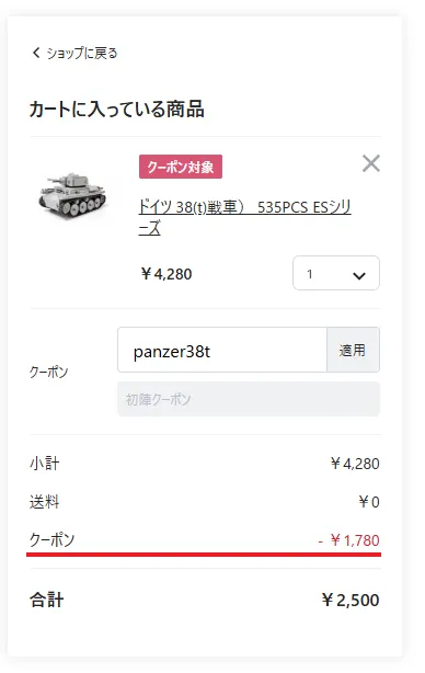 パンツァーブロックスの世界への“初陣”を応援する特別クーポンです。ぜひこの機会にブロック戦車の世界に出陣しましょう。